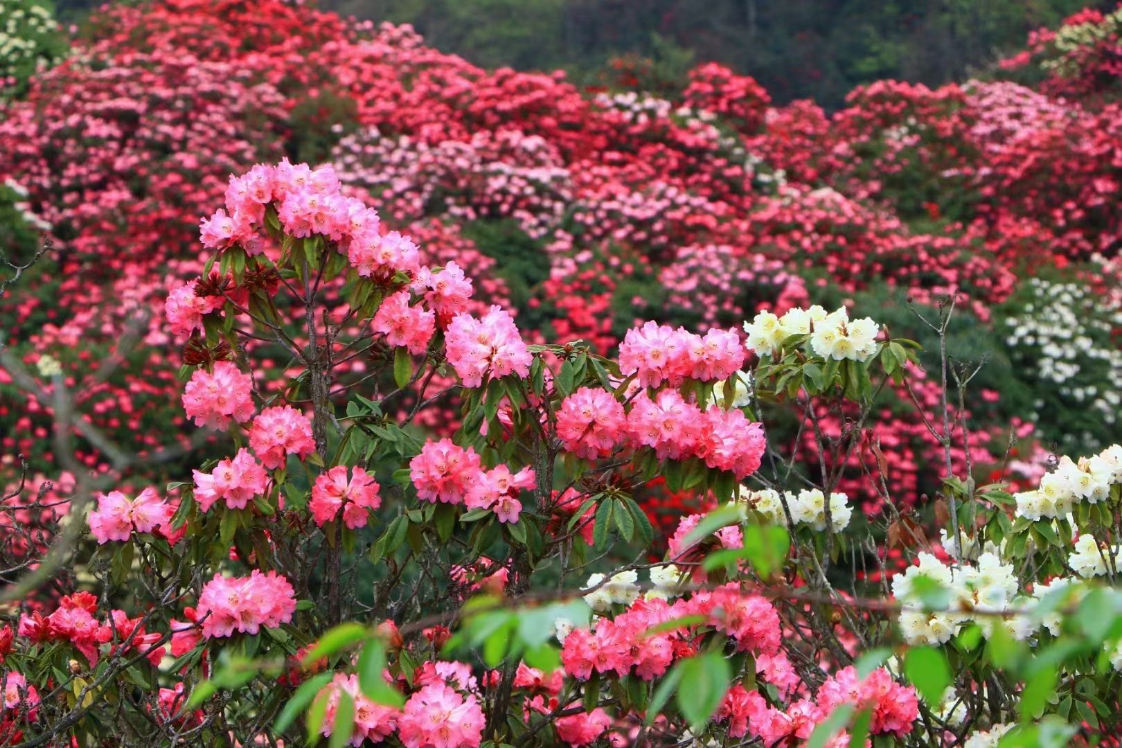 早餐后,乘车(正常行驶10分钟)前往杜鹃花国家森林公园【百里杜鹃】(含电瓶车和保险,游览时间不少于3小时):享有“地球彩带、杜鹃王国、养身福地、清凉世界”之美誉,是全国低碳旅游实验区、亚洲·大中华区十大自然原生态旅游景区、天然花园。分布杜鹃花60多个品种,占世界杜鹃花种属5个亚属中的全部。最难得的是一树不同花,可在一棵树上开出不同颜色的花朵,达7种之多。乘车(正常行驶2.5小时)前往贵阳北换乘高铁二等座返长沙南(自理),结束愉快的贵州之旅!