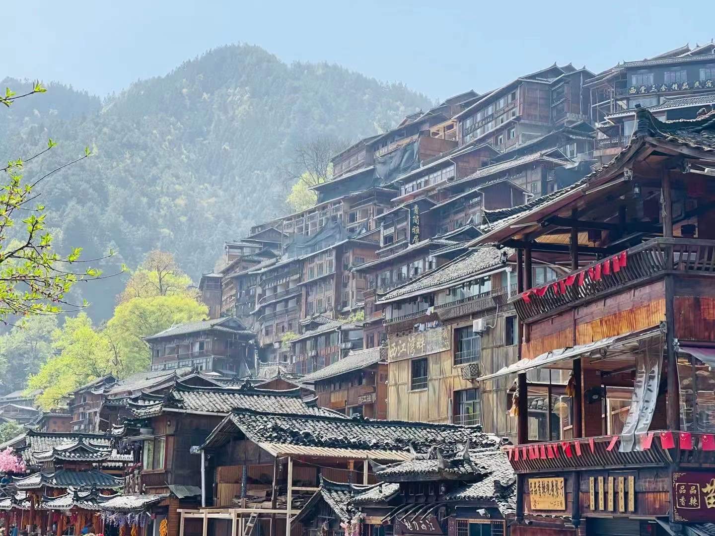 早餐后,游览历史文化名城【镇远古城】(含往返摆渡车,游览时间不少于1.5小时):古城内河水蜿蜒,以“S”形穿城而过,远观颇似太极图,因此又名太极古镇。穿古巷、看古码头、访古民居。古镇的巷道狭长幽深,其结构错综复杂,历史悠久体现了江南与山地的完美结合,是中国建筑史上的奇观!乘车(正常行驶2.5小时)前往西江苗寨,感受苗家的山美水美人美歌美,还可以与苗家男女一起载歌载舞。入住酒店休息。 温馨提示:可以自行游览西江苗寨夜景,自由活动期间,请注意人身财产安全