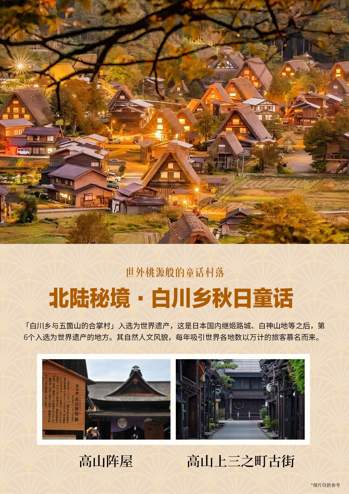 枫叶季专属体验:10月底-11月发团,精准捕捉日本关东、中部、关西地区红叶最佳观赏期,特别安排北陆秘境白川乡秋日童话、河口湖枫叶回廊、岚山竹林小径、清水寺红叶庭园、水谷茶屋等秋色巅峰景点,沉浸式感受日本深秋的诗意与浪漫。