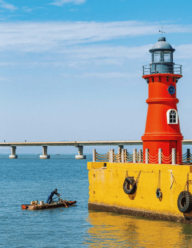早餐后,乘车前往乘车往广东最美丽海岛,被称为“暖冬秘境小岛”“东方夏威夷”-【南澳岛】, 途经海上巨龙-【南澳大桥】领略海上奇观,全长约 11.08 公里;其中桥梁全长9341米,全线采用设计速度60公里/小时的二级公路标准。后游览进岛前很值得停车驻足欣赏的【启航广场】海鸟翱翔,背景就是让天堑变通途的南澳大桥;【长山尾灯塔】红色塔身,黄色基底,非常的鲜艳显眼,瞬间穿越到济州岛南澳第一站网红打卡点;南澳的东南方向,灯塔一到夜晚就亮起灯,为出海的渔船指引航港口。安静地屹立在山海交界之处,和周边的环境融成一幅绝美的风景,打卡南澳岛上的网红树,被网友称为“孤独的树”,整个大海都在陪它。可是那么多人为它而来,这颗树一点也不孤独。 【南澳北纬23°】不负此生之行、以其独特的纬度浪漫,诠释着山海交融的秘境之美。这里随便一拍都出片,转角的天海交汇成一副绝美的画面。 【彩虹栈道】蜿蜒于海岸的彩虹路,像一条跃动的彩练,是南澳新打卡地,在这里欣赏彩虹于海岸线的交辉相映,它代表着青春,充满了浪漫的色彩。 【小众旅行体验】2.0版(必消套餐内) 1、出海观光+讲解生蚝养殖技术+品尝蒸蚝(每人半打)+割蚝食蚝。 2、海上游览万亩彩虹海、参观鲍鱼及石斑养殖基地、观赏白色风车山、海上渔排娱乐体验(垂钓+卡拉OK+摇椅) 然后游览【北回归线标志塔】它占地面积33亩,长约225米,自西向东,景点依次是前广场,如茵绿草坪和主景点北回归线标志塔。总设计师郑少文融合了天文现象和常识,又叫自然之门; 游览【青澳湾沙滩】广东省著名沐浴海滩之一,金黄柔软的沙湾绵延,坡度平缓,沙质洁净,无礁石无淤泥,海水无陵质无污染。